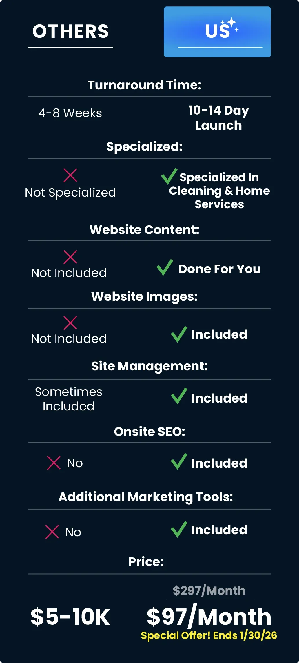 We focus on getting you "Ready-to-Book" leads. We’d rather get you five great phone calls from neighbors who need a cleaner than 50 clicks from people who are just looking for a deal.